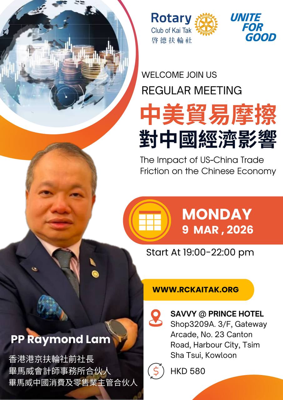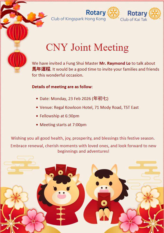As President, I’m committed to leading our club in practical, hands-on service this year. Let’s focus on real impact: visiting communities to understand their needs, supporting vulnerable groups, and tackling local challenges. Rotary isn’t about words—it’s about action. Whether it’s delivering meals to seniors, tutoring children, or improving neighborhood spaces, every small effort counts. I urge every member to contribute what you can—time, skills, or resources. Together, we can make Kai Tak better through simple, meaningful work. Let’s get started today.